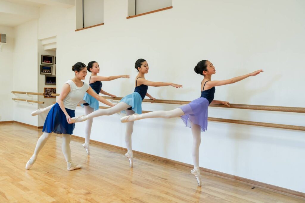 バーにつかまって、プリエやタンジュなどのとても大切な動きから、ひとつひとつ積み重ねていきます。